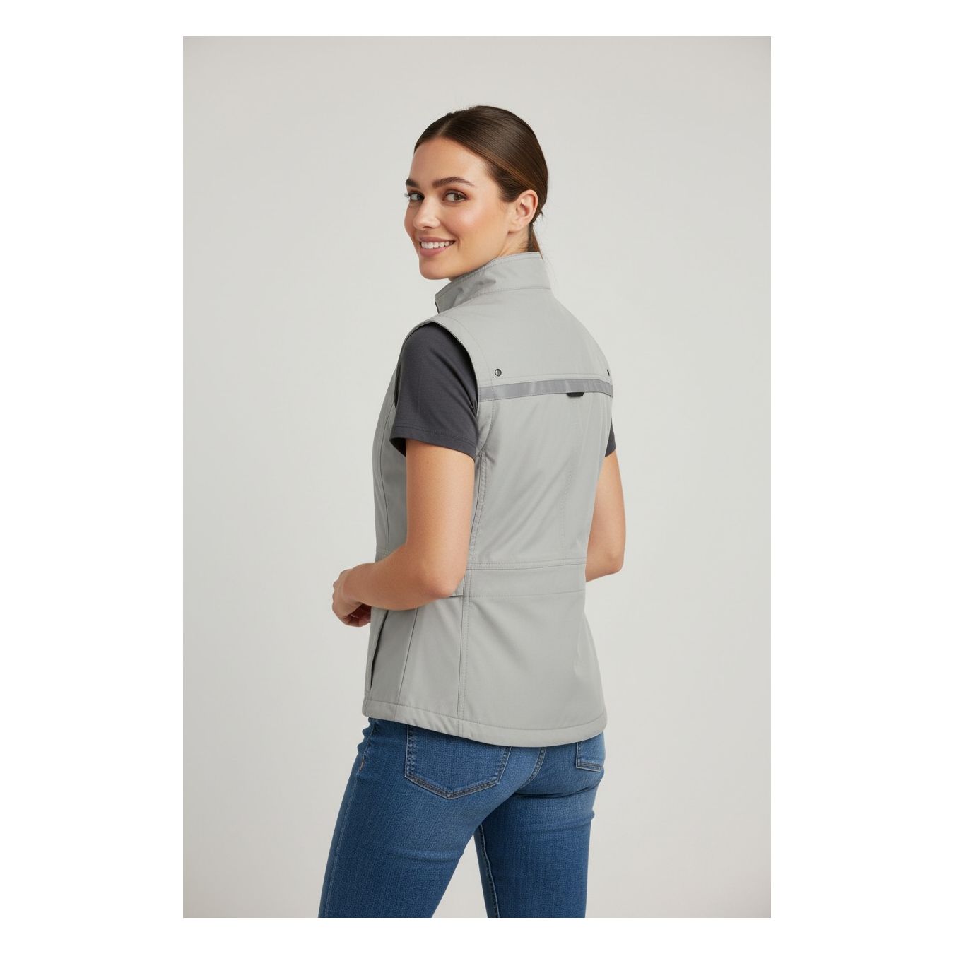 Damenweste aus weichem, leichtem Stoff, ideal für warme Jahreszeiten für einfache Spaziergänge, dank ihrer 4 Taschen ist es möglich, Schlüssel, Mobiltelefone und Geldbörsen ohne Stress zu tragen.