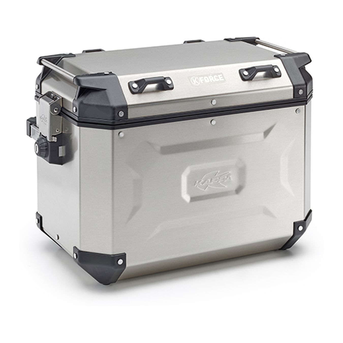 K'FORCE Seitenkoffer aus Aluminium natur, erhältlich in zwei verschiedenen Litern 37 l und 48 l, auch in schwarzer Version erhältlich. Kupplungssystem: MONOKEY-NOCKENSEITE®.