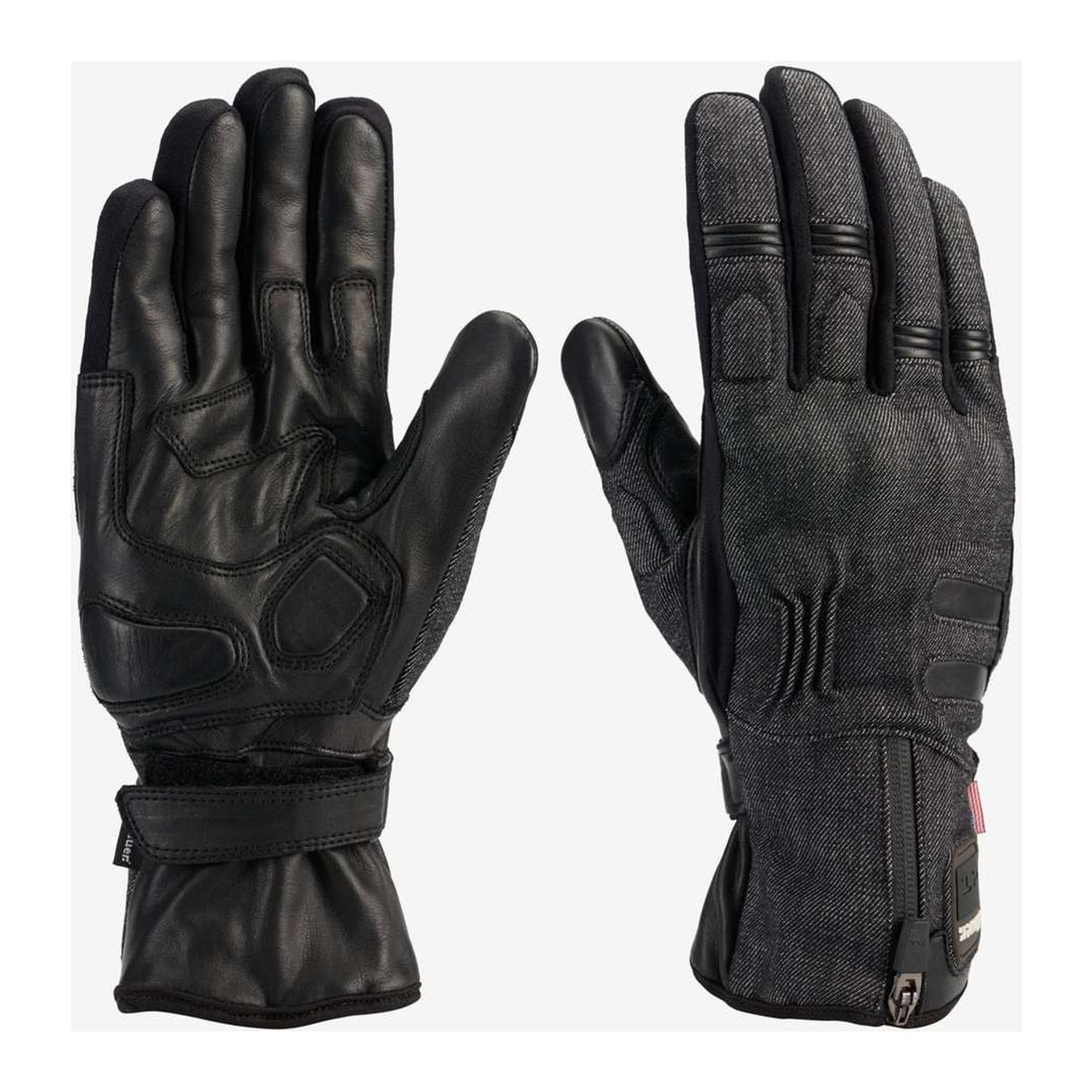 •Guanto realizzato in pelle di nappa bovina nella zona palmo, la parte dorsale è realizzata in tessuto denim in cotone;