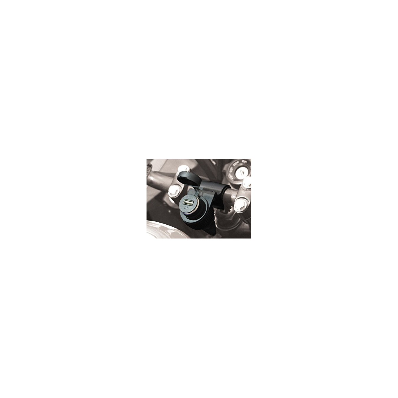 12V WATERTIGHT CIGARETTE LIGHTER SOCKET WITH HANDLEBAR HOLDER + USB SOCKET ADAPTER12V cigarette lighter socket + USB socket adapter (5V, max. 1.5 Amp), can be used to charge and power electronic devices (including Apple iPad, iPhone, iPod)