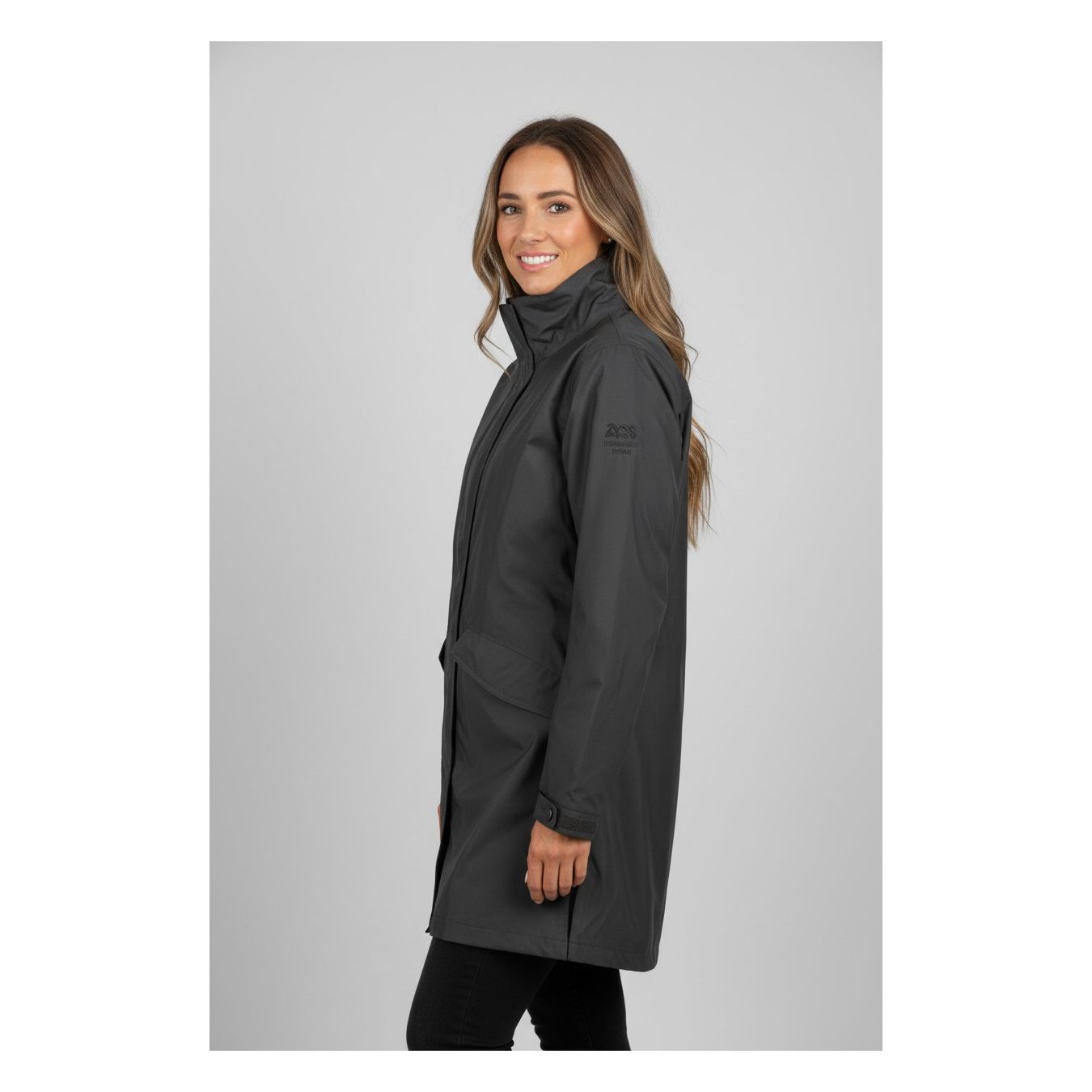 A SOBER AND ELEGANT LADY OUTERWEAR IN SOLID BLACK, TO WEAR EVERY DAY, SUITABLE FOR URBAN AND EXTRA-URBAN TRAVEL. FAVORING THERMAL COMFORT AND SAFETYDuotex jacket