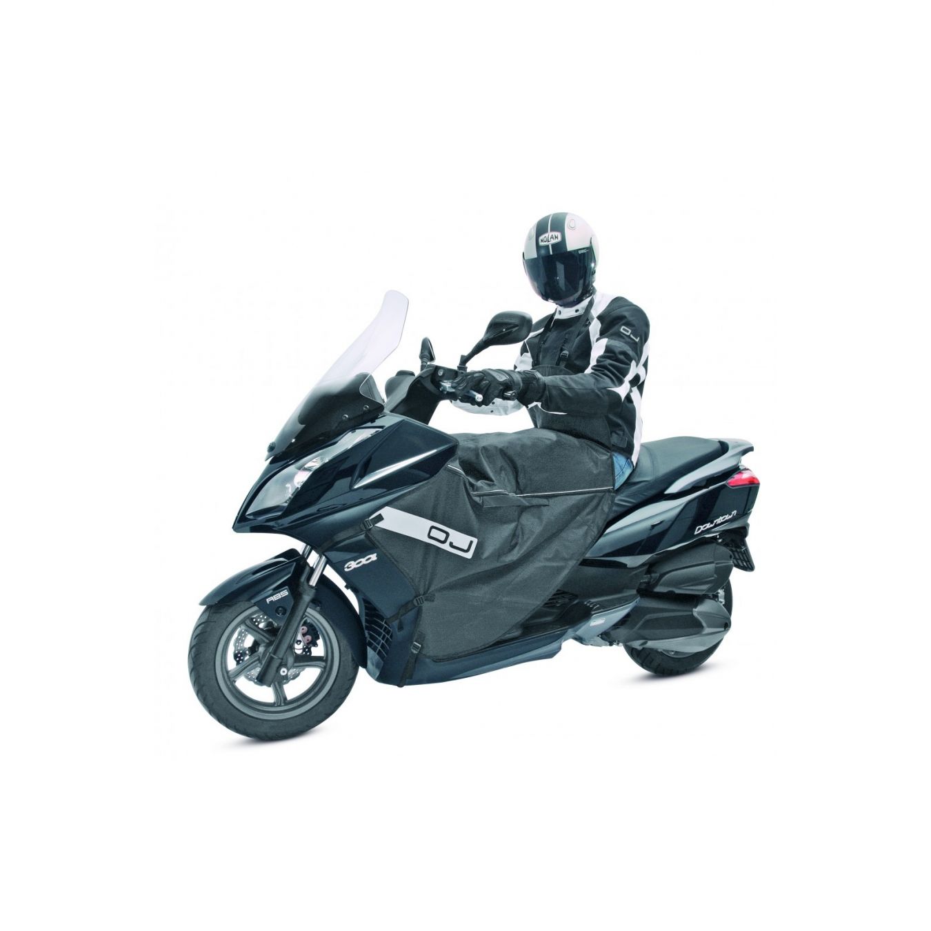 Scooter leg covers, made of polyester, waterproof, with strap or screw mounting, depending on dei model, with removable padding, anti-waving system with rigid bars, seat cover and side pockets