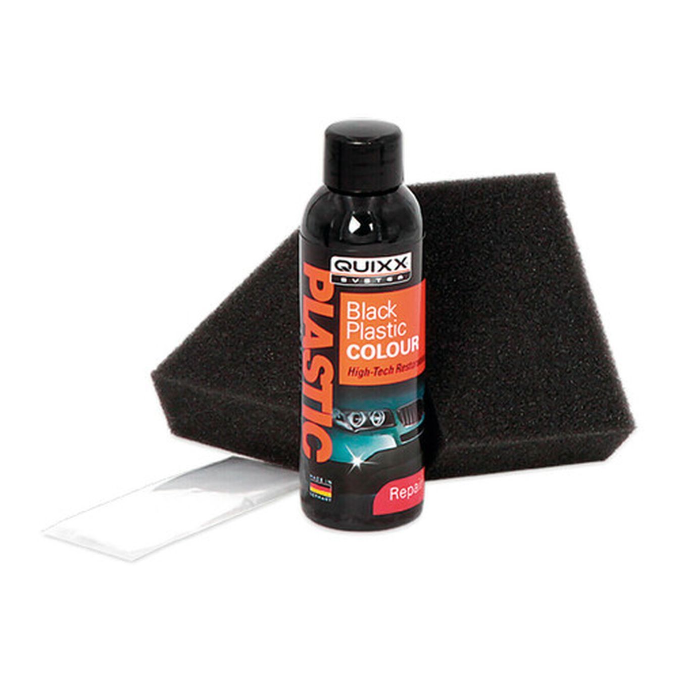 The QUIXX Black Plastic Color will give your vehicle a renewed look: the plastic parts of the cars soon become gray, opaque, weathered and aged. The most affected parts are the bumpers, wheel arch covers and decorative door slats and the overhead bin. While the other products only renew the material temporarily, the QUIXX Black Plastic Color offers up to 12 months of intense black coloring and protection, also thanks to Black-Polymer-Technology.