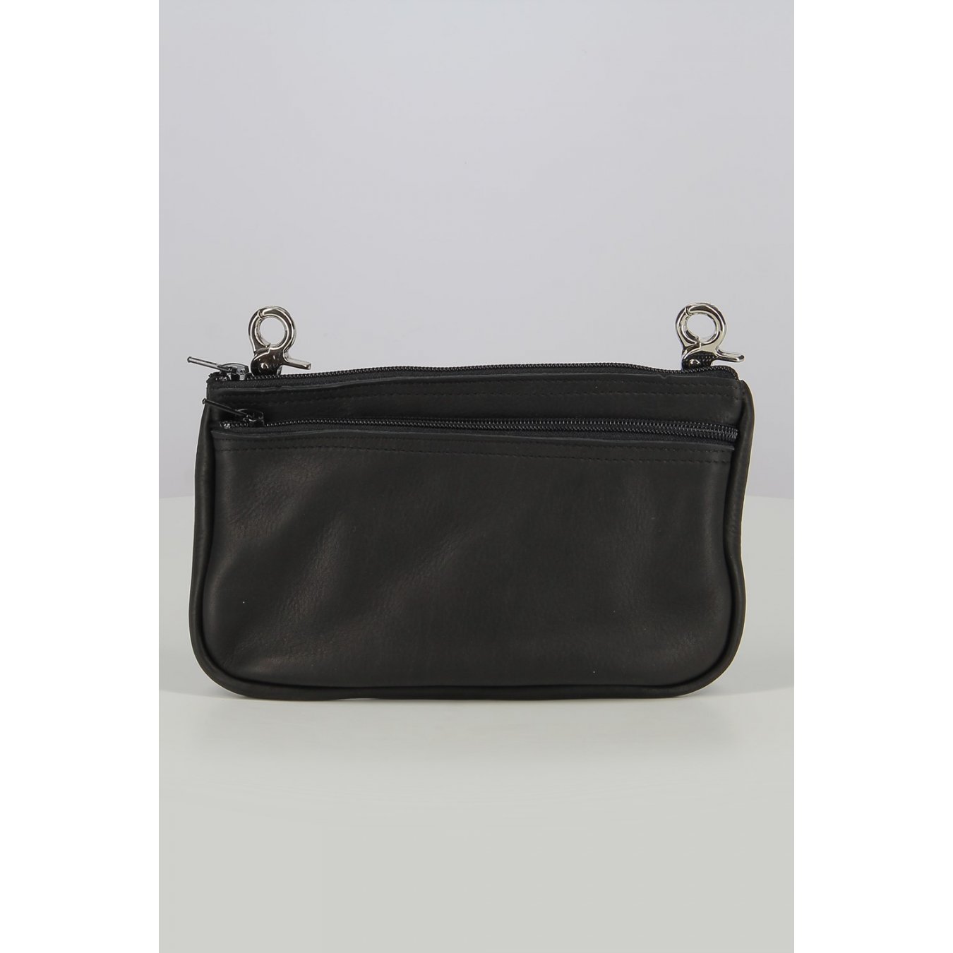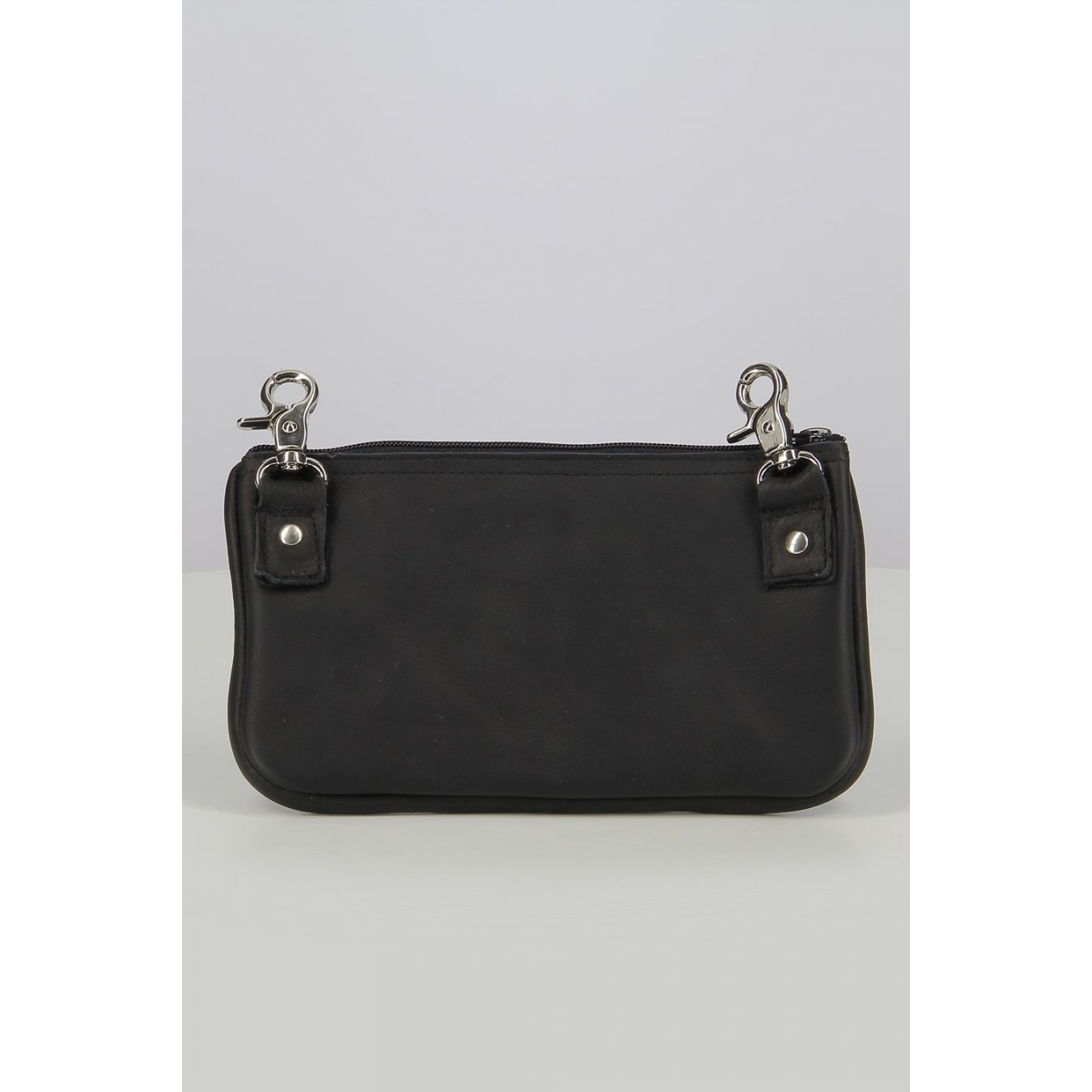 Description Bolso de pierna de cuero suave con mosquetones negros