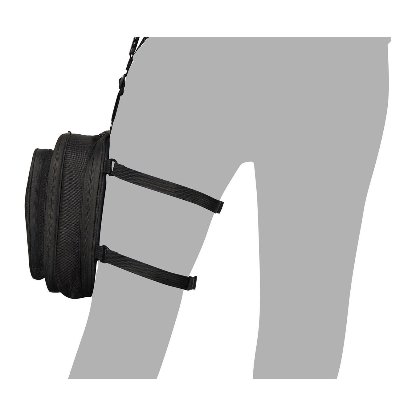 Bolso de pierna perfecto para viajes largos, con 3 bolsillos con cremallera y numerosos compartimentos para documentos, teléfono, llaves y pertenencias personales, de fácil acceso mientras viaja en motocicleta.