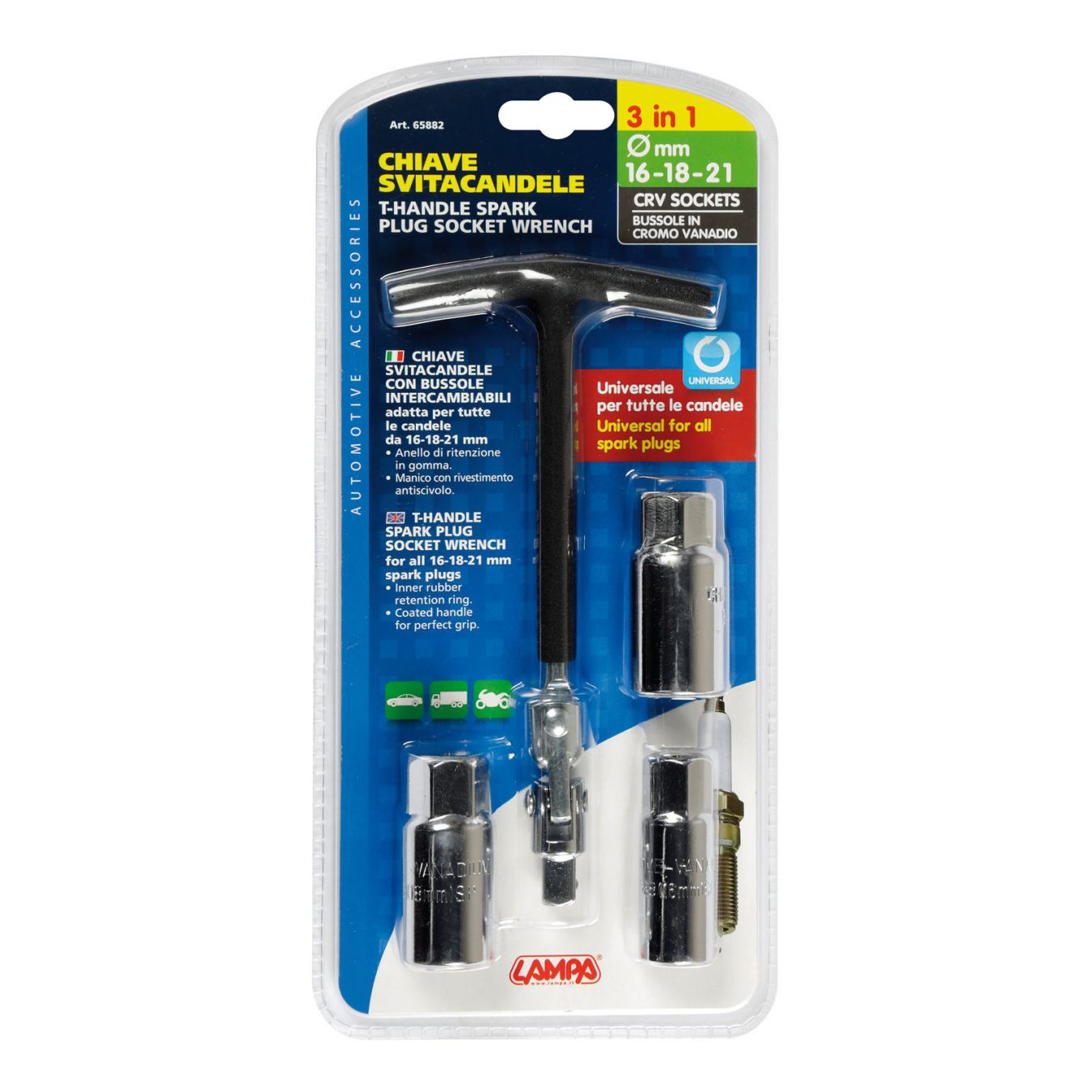 CLÉ À VIS À BOUGIE 16+21+18 MM AVEC POIGNÉE REVÊTUE LAMPA 65882