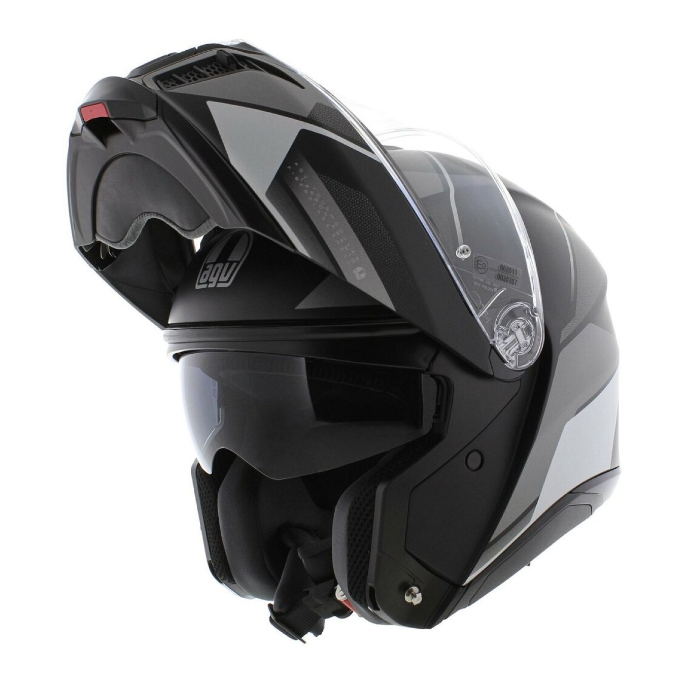 L’aerodinamica del casco è ottimizzata anche in configurazione aperta. AGV Tourmodular può essere utilizzato con la mentoniera alzata anche in movimento in totale sicurezza, superando gli standard richiesti dalla specifica omologazione P/J.