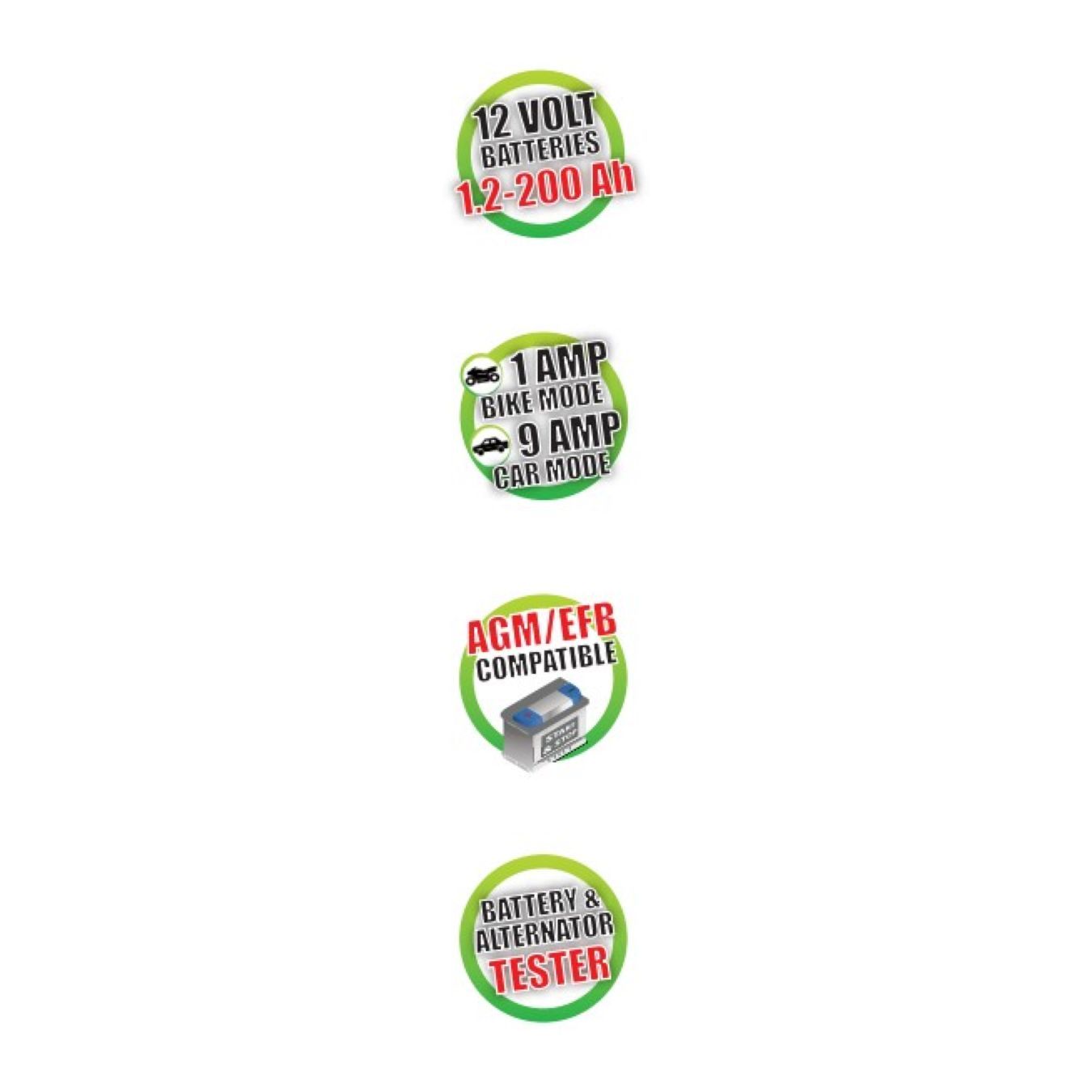 * 5 programmi: CAR per batterie auto, BIKE per batterie moto, START&STOP per batterie AGM/EFB